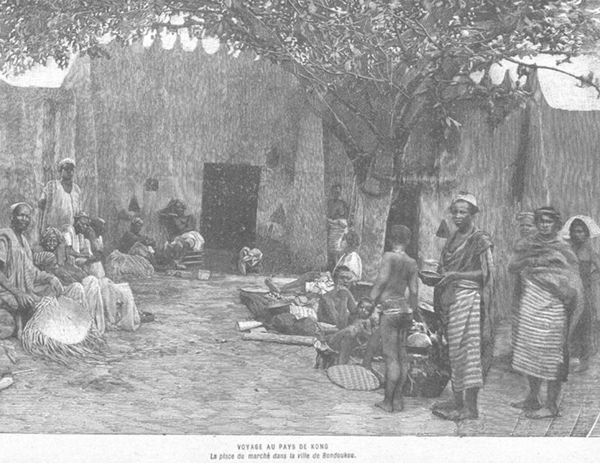 Louis Gustave Binger (1856-1926) part de Bamako puis atteint Kong en février 1889. Les deux explorateurs signent un traité à Kong le 10 janvier puis atteignent Grand-Bassam le 20 mars 1889.