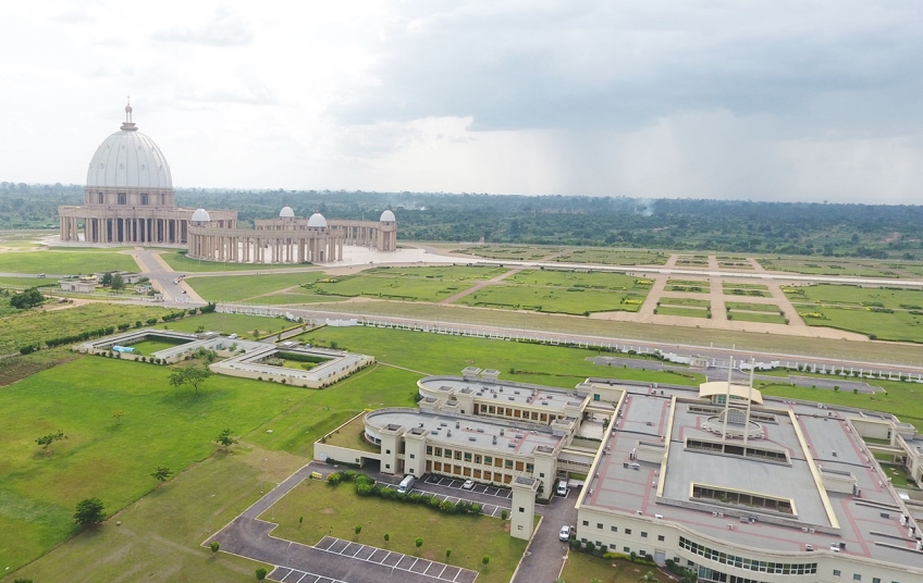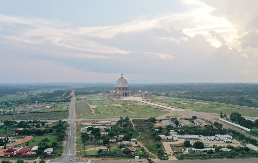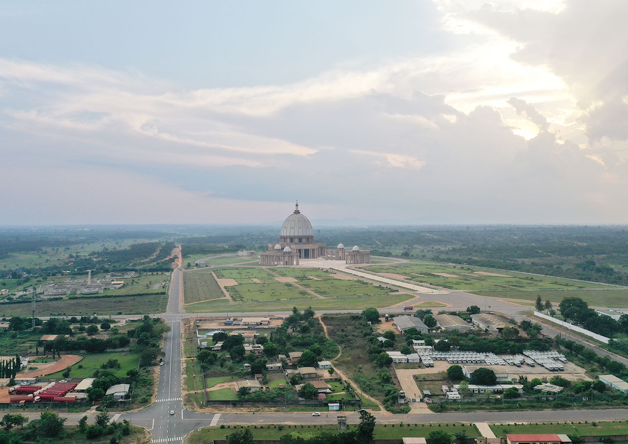 La Basilique Notre Dame de la Paix est la plus grande au monde. Conçue sur le modèle de la BASILIQUE de Saint Pierre de Rome et consacrée par le Pape JEAN PAUL II, cette immense bâtisse religieuse confère une notoriété à la ville de Yamoussoukro.